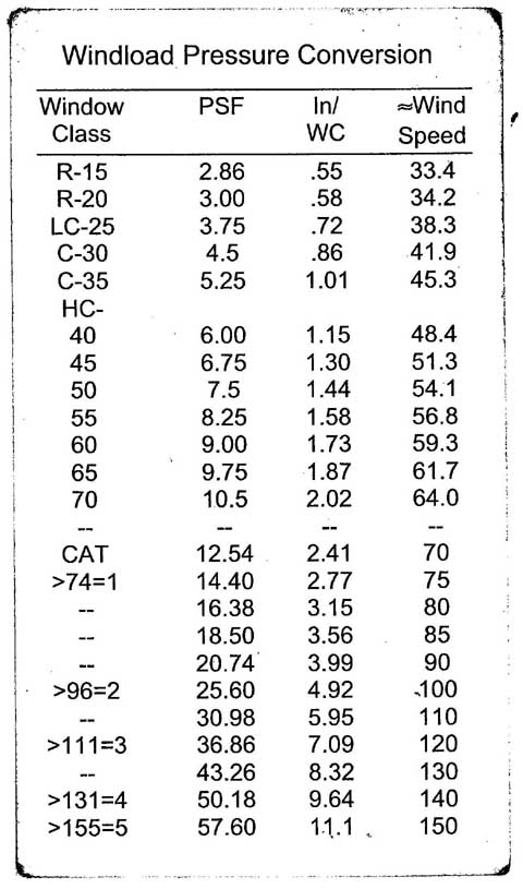 This principle, apart from  being fairly intuitive for sailors, pilots, CFD modelers, and other folks who  deal often with the wind, is specifically codified for the construction sector  by references and copies of the language of the standard published by the  American Society of Civil Engineers and the Structural Engineering Institute  named "ASCE/SEI 7 Minimum Design Loads for Buildings and Other  Structures" in local building codes. One chapter is devoted to the wind.  The equation 6-15 in par. 6.5.10 states "Velocity pressure, q,, evaluated  at height z shall be calculated by the following equation: qz = 0.00256 *Kz * Kzt * Kd * V^2 *  I(lb//ft2), " where V is the basic wind speed, according to p.6.3 and all  other components of the equation are coefficients.                This is basically saying that  the pressure equals square velocity times miscellaneous coefficients.  Therefore, when the wind speed doubles, the pressure quadruples because the  relationship is square. I asked a friend of mine who  took the survey (who is an architect but runs a successful building  enclosure consulting firm) how he found a response to this question. He said he  didn't know the answer off the top of his head but he looked at a handy  windload pressure conversion charts to figure out the answer by comparing  readings from different rows. Congratulations!